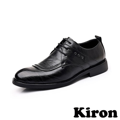 時尚剪裁釘釦拼接繫帶商務皮鞋 黑*KIRON* |