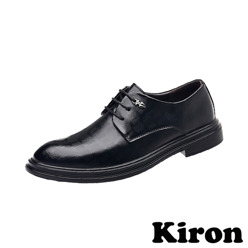 時尚格子壓紋繫帶商務休閒皮鞋 黑*KIRON* |