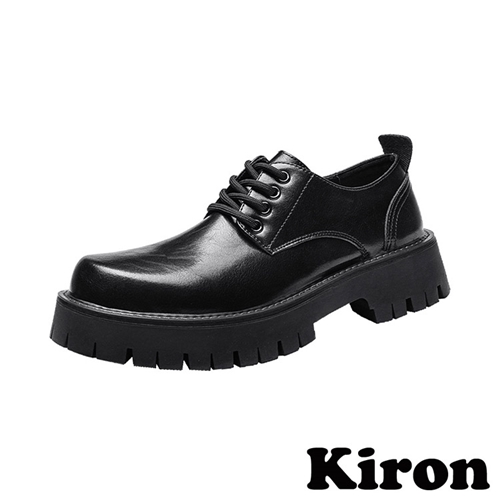 百搭個性經典四孔繫帶厚底粗跟休閒鞋 皮鞋 黑*KIRON* |