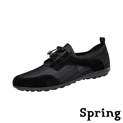 真皮透氣網布拼接束帶戶外休閒鞋 黑*SPRING* |