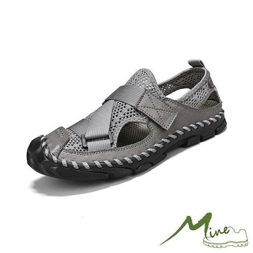 護趾機能透氣網布魔鬼粘戶外登山涼鞋 灰*MINE* |