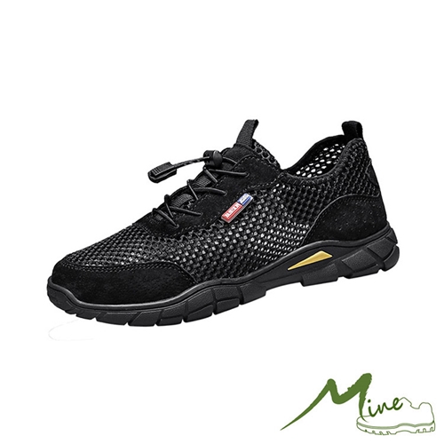 真皮立體透氣網布拼接便利束帶戶外休閒鞋 黑*MINE* |