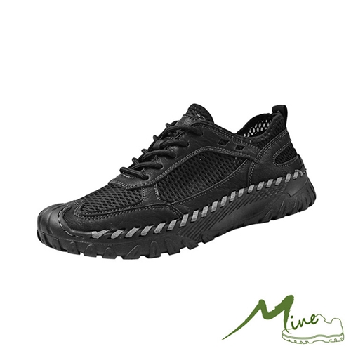 真皮透氣網面拼接防滑透氣機能戶外休閒鞋 黑*MINE* |