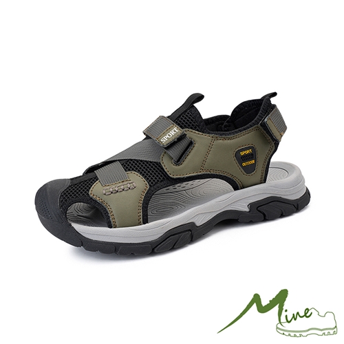 潮流護趾機能網布拼接Z字帶戶外休閒涼鞋 綠*MINE* |