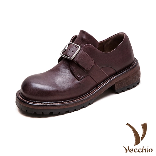 全真皮細膩馬皮復古搭釦樂福鞋 休閒鞋 咖*VECCHIO* |