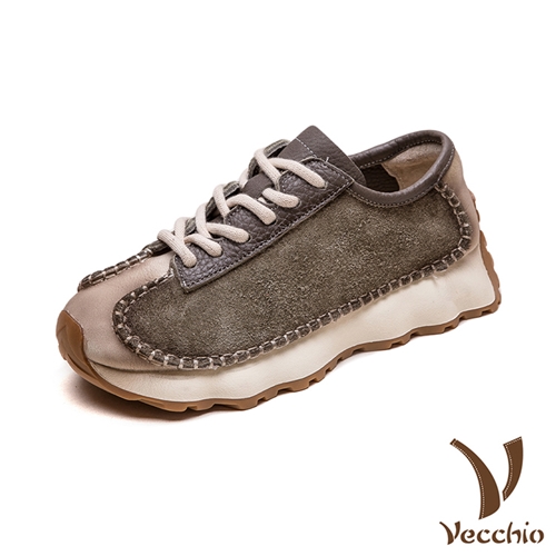 全真皮頭層牛皮手工縫線拼接厚底休閒鞋 綠*VECCHIO* |