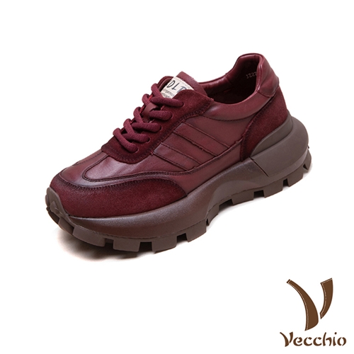 真皮頭層牛皮復古純色拼接厚底休閒運動鞋 酒紅*VECCHIO* |