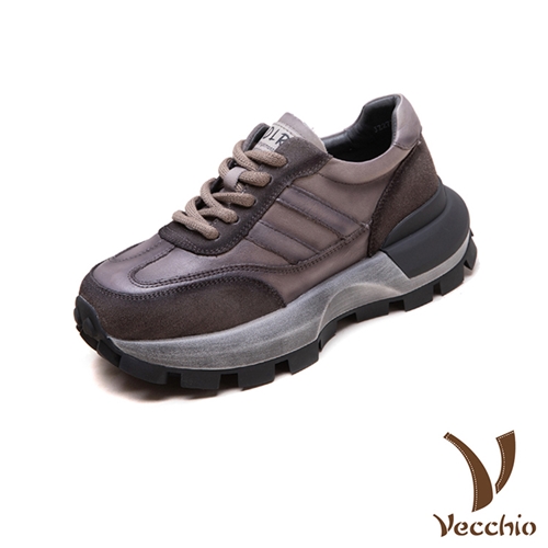 真皮頭層牛皮復古純色拼接厚底休閒運動鞋 灰*VECCHIO* |