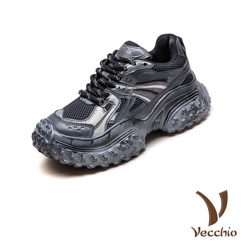 真皮透氣網面拼接個性復古厚底老爹鞋 運動鞋 黑*VECCHIO* |