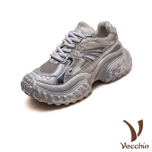 真皮透氣網面拼接個性復古厚底老爹鞋 運動鞋 灰*VECCHIO* |