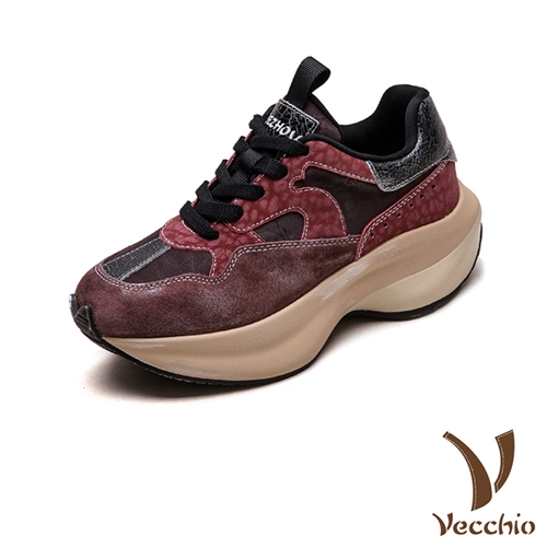 真皮頭層牛皮異材質復古拼接厚底休閒鞋 紅*VECCHIO* |