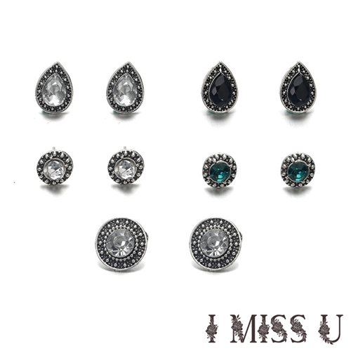 [快速出貨] 復古民族風水滴寶石造型耳釘5對套組*I MISS U* |