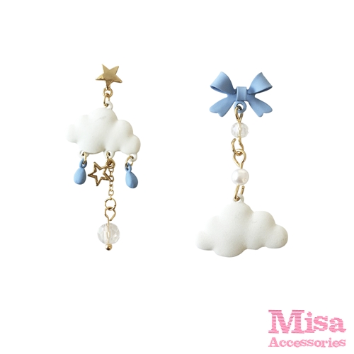 [快速出貨] 韓國設計不對稱可愛雲朵蝴蝶結造型夾式耳環*MISA* |