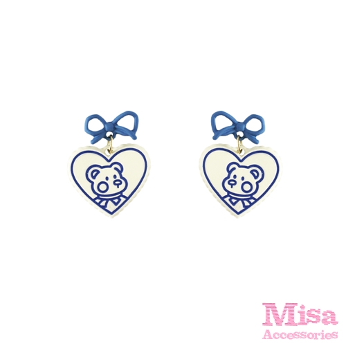 [快速出貨] 韓國設計可愛撞色愛心小熊造型夾式耳環*MISA* |