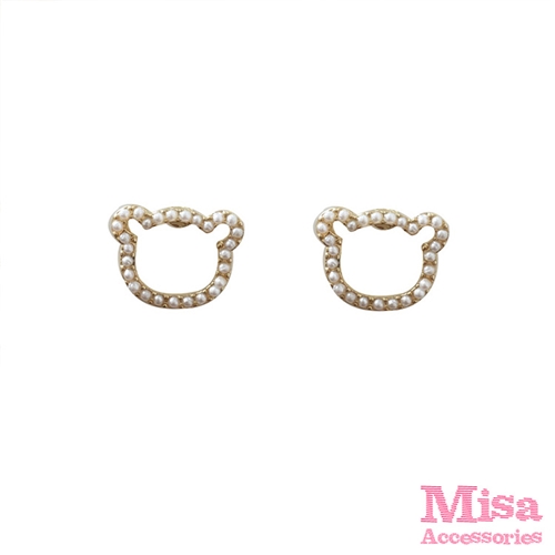 [快速出貨] 韓國設計可愛縷空線條珍珠小熊造型夾式耳環*MISA* |