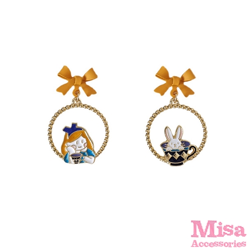 [快速出貨] 不對稱咖啡杯愛麗絲與兔子造型夾式耳環*MISA* |