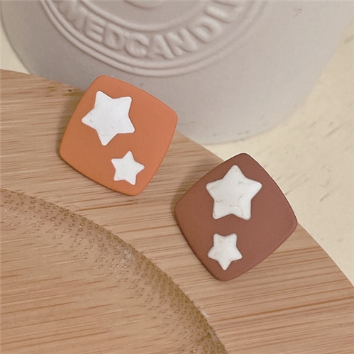 [快速出貨] 韓國設計方形撞色小星星造型夾式耳環*MISA* |