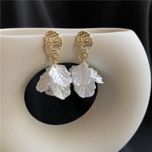 [快速出貨] 貝殼裂紋金屬花瓣造型夾式耳環*MISS KOREA* |