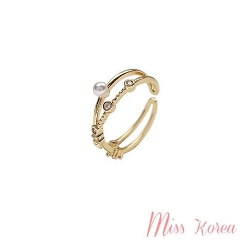 [快速出貨] 韓國設計微鑲美鑽交叉珍珠開口戒*MISS KOREA* |