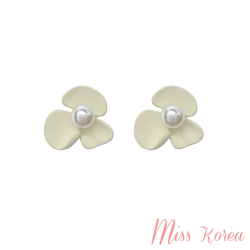 [快速出貨] 溫柔氣質白色花朵珍珠夾式耳環*MISS KOREA* |