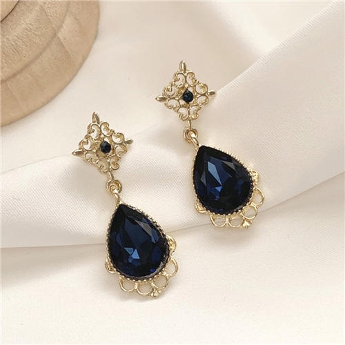 [快速出貨] 氣質花邊宮廷風水滴寶石夾式耳環*SECRET BOX* |