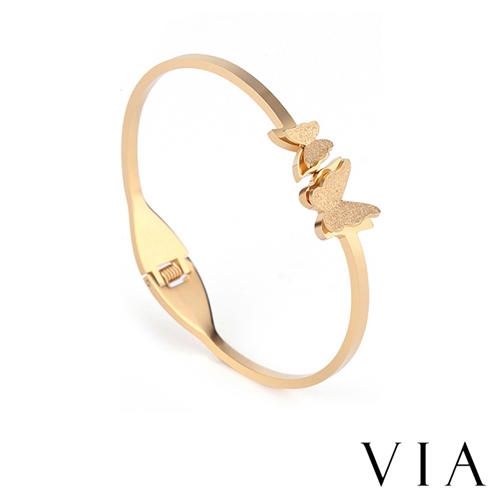 [快速出貨] 磨砂立體雙蝴蝶造型316L鈦鋼手環 手鐲*VIA* |