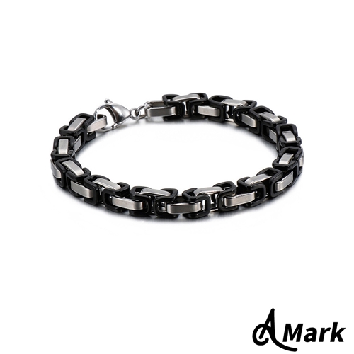 [快速出貨] 帝王回形鈦鋼手鍊 O款 間黑 6MM*21CM*A MARK* |