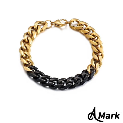 [快速出貨] 創意多色經典鍊帶鈦鋼手鍊 D款 金黑金*A MARK* |