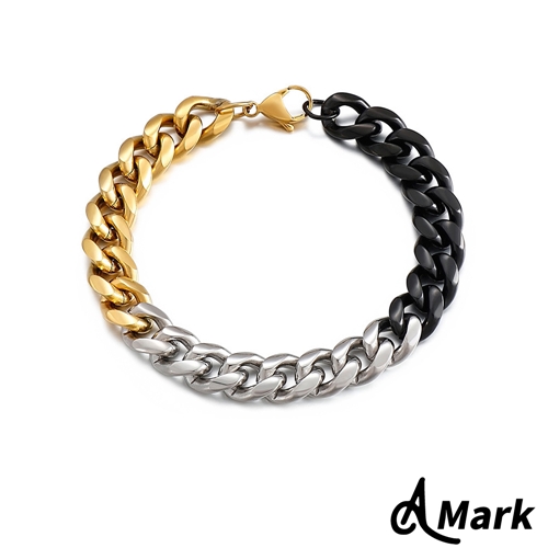 [快速出貨] 創意多色經典鍊帶鈦鋼手鍊 G款 金銀黑*A MARK* |
