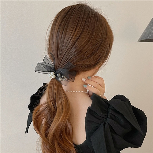 [快速出貨] 韓國設計珍珠網紗蝴蝶結綁髮髮繩 髮圈*MISS KOREA* |