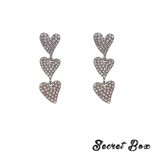 [快速出貨] 韓國設計閃耀滿鑽愛心串串造型耳環*Secret Box |