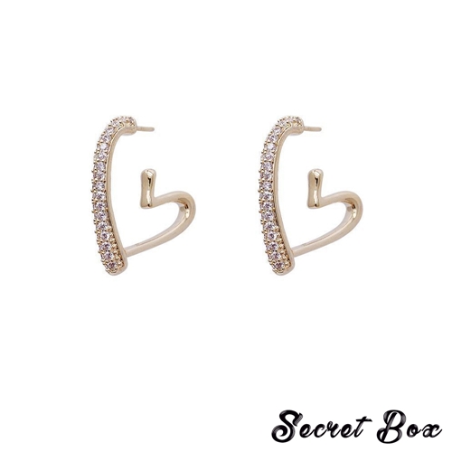 [快速出貨] S925銀針華麗閃耀美鑽愛心線條耳環*Secret Box* |