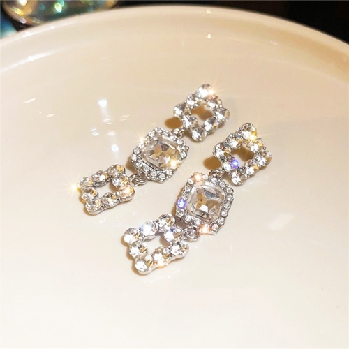 [快速出貨] 韓國設計奢華閃耀美鑽寶石方形長鍊耳環*Secret Box* |
