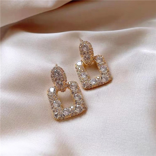 [快速出貨] 韓國設計法式閃耀美鑽寶石幾何方形耳環*Secret Box* |