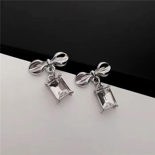 [快速出貨] 韓國設計甜酷蝴蝶結方晶寶石造型耳環*00:00* |
