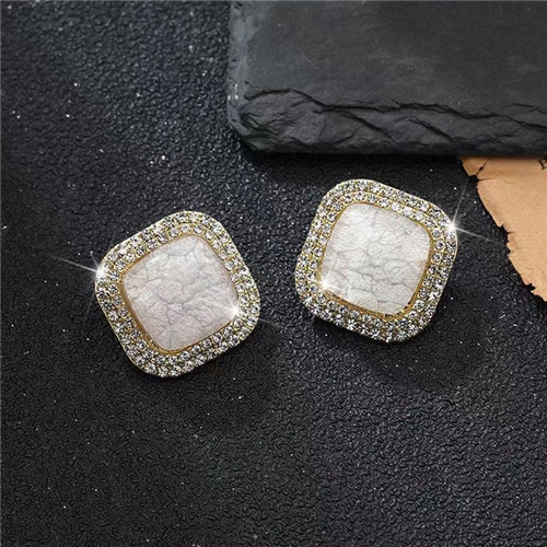 [快速出貨] S925銀針華麗滿鑽方形裂紋寶石造型耳環*Secret Box* |