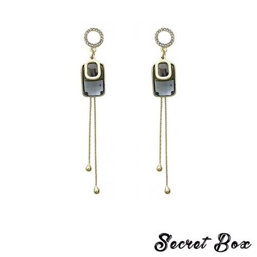 [快速出貨] S925銀針美鑽方形水晶長墜造型耳環*SECRET BOX* |
