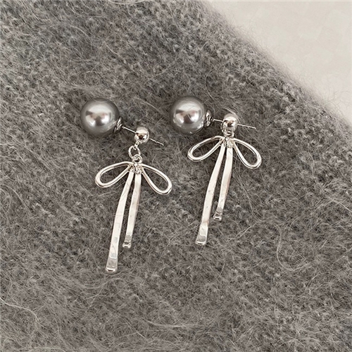 [快速出貨] S925銀針清冷感金屬蝴蝶結珍珠造型耳環*00:00* |