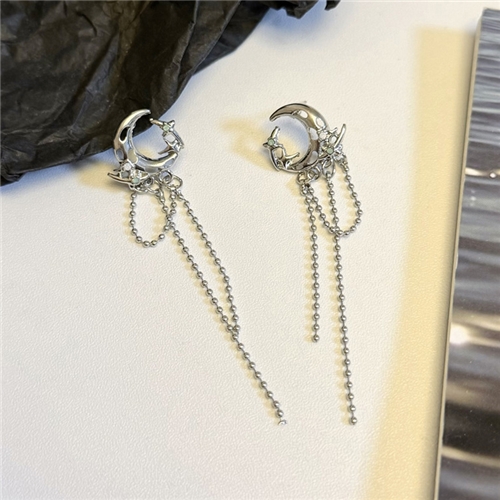 [快速出貨] S925銀針縷空月亮長墜流蘇珠鍊造型耳環*00:00* |