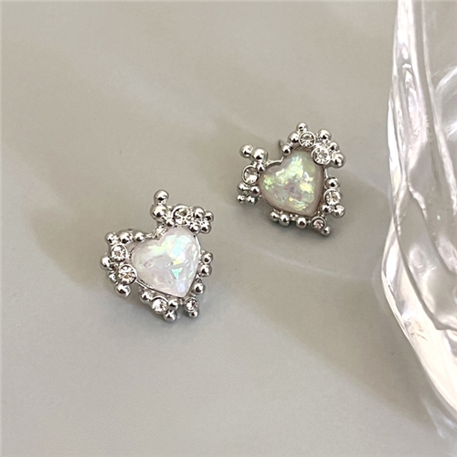 [快速出貨] S925銀針不規則甜酷寶石愛心造型耳釘*00:00* |