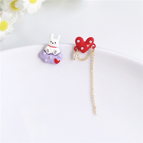 [快速出貨] 韓國設計S925銀針不對稱溫柔愛心兔子耳環*MISA* |