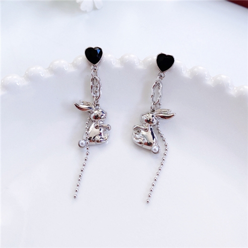 [快速出貨] 韓國設計S925銀針可愛兔子愛心珍珠長墜耳環*MISA* |