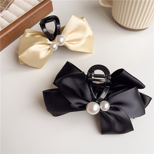 [快速出貨] 高級感緞面蝴蝶結珍珠墜抓夾 2色任選*MISS KOREA* |