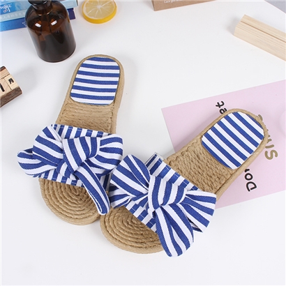 海軍風條紋蝴蝶結仿草編平底拖鞋 紅/藍 |