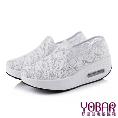 唯美縷空蕾絲勾花造型氣墊美腿搖搖鞋 白 |