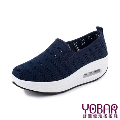 透氣縷空飛織網布舒適氣墊美腿搖搖鞋 藏青 |