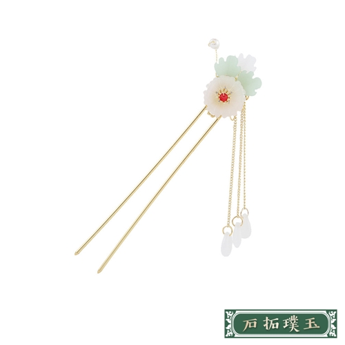 復古仿玉石月笙古風長墜U型髮簪*石拓璞玉* |