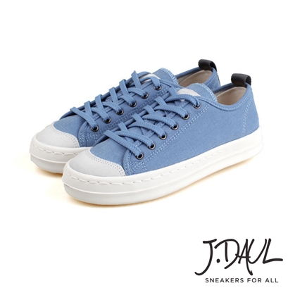[快速出貨]經典厚底真皮帆布休閒鞋 湖藍 *J.DAUL* |