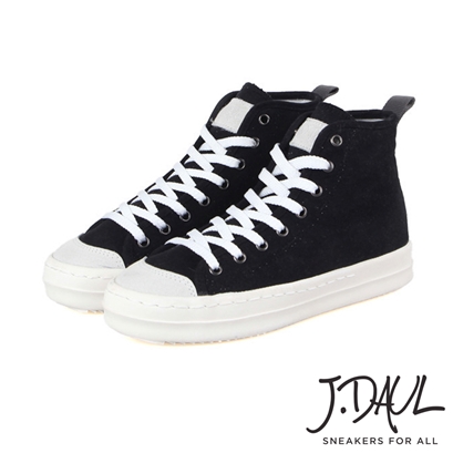 [快速出貨]經典厚底真皮高筒帆布休閒鞋 黑 *J.DAUL* |