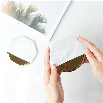 北歐風白色大理石紋不規則金邊設計款陶瓷杯墊 |